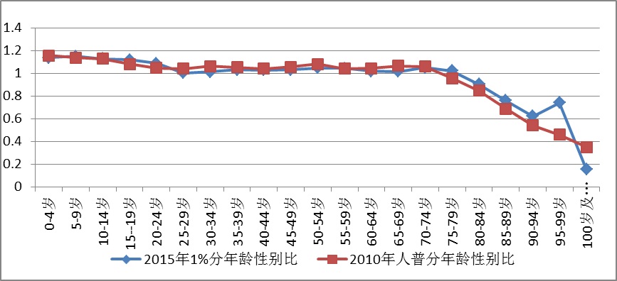 ?圖2?? 2015的1%與2010“六普”分年齡性別比